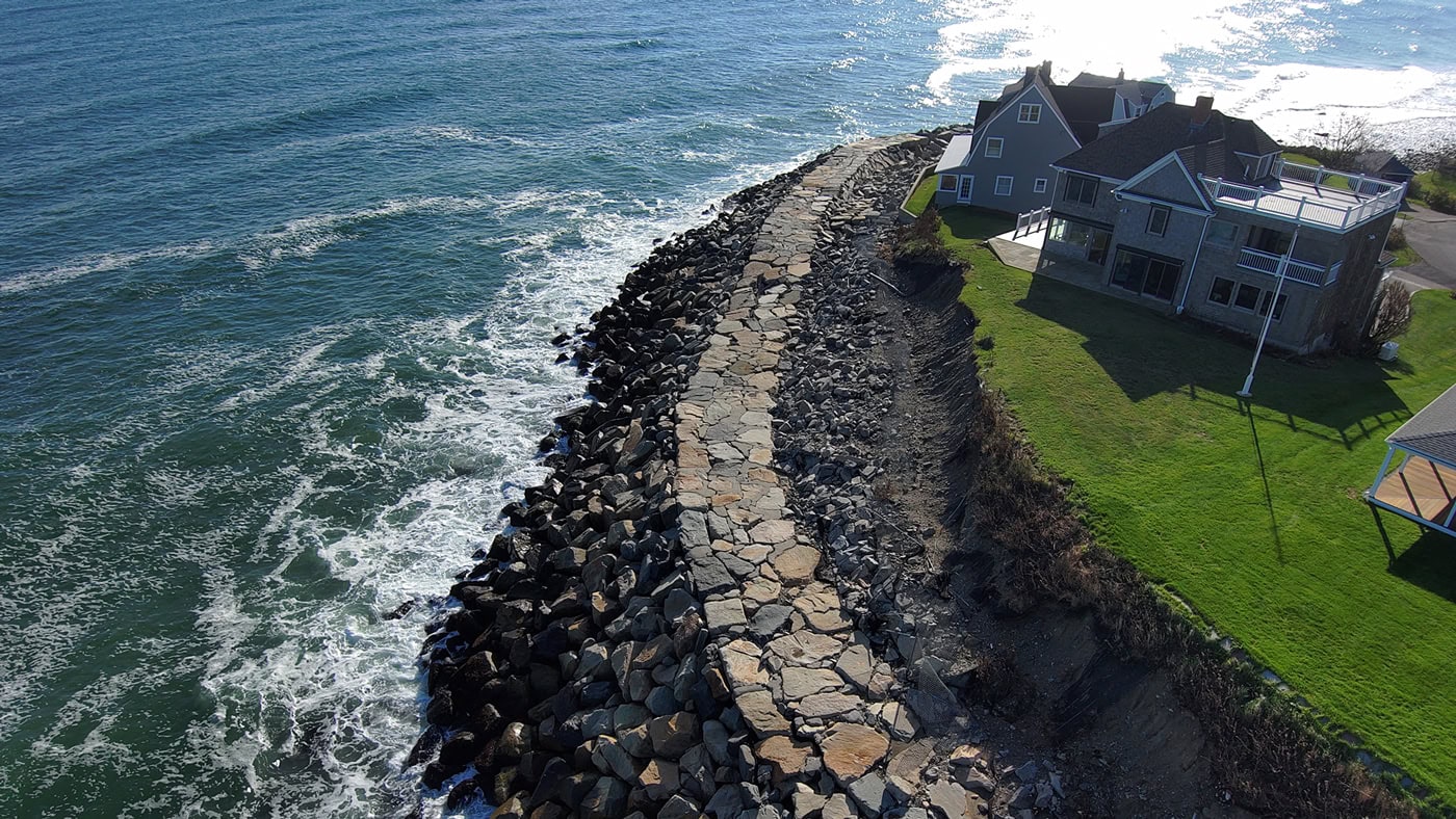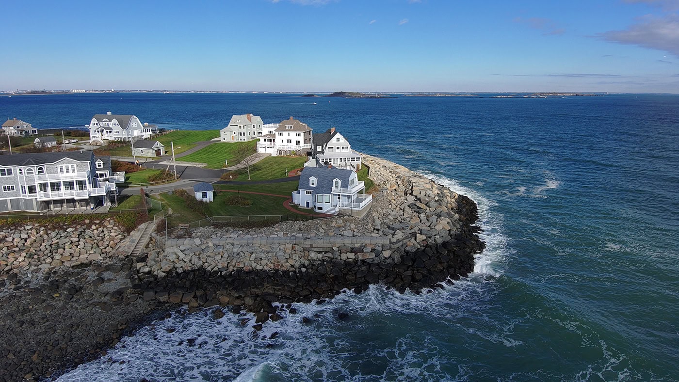 Point Allerton, located along the northeastern elbow of the Nantasket Peninsula in Hull, Massachusetts, is a site of historical significance. The existing shoreline revetment was experiencing severe overtopping during large storm events, leading to backshore erosion and progressive structural failure. Edgewater was tasked to assess the contributing factors behind this deterioration and develop potential solutions. The Edgewater team evaluated the site’s conditions, focusing on the effects of both chronic and episodic wind/wave events across a range of water levels. The analysis resulted in four design recommendations aimed at protecting the upland structures, including a drainage system to manage excess water during rare but extreme events.